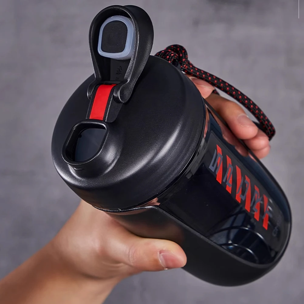 Features: 1.Food-Grade Material: Made with food-grade materials, ensuring the sports shaker bottles are non-toxic and odorless, promoting safe and healthy drinking experiences. 2.Detachable Components: All parts of the drink shake bottle can be easily disassembled and cleaned, allowing for convenient maintenance and hygiene. 3.Extended Strap Design: The fitness water cup is equipped with a longer and wider back strap for easy carrying without hand strain. 4.Leak-Proof Structure: The whey protein powder mixer bottle features a multi-level leak-proof design with a silicone ring to effectively prevent leaks. 5.Wide Mouth Design: With a rounded wide mouth, the portable drink cup offers comfortable sipping without oral injuries and is easy to clean. Specification: Origin: Mainland China Material: PC, ABS, PP, polypropylene, silicone, 304 stainless steel Product size: 185mmx95mmx95mm/7.3inx3.7inx3.7in Net weight: 245g Gross weight: 361g